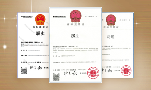 房朋已获房朋、联卖、安房盟、房递等三十余件商标证书