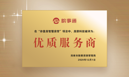 房朋被“皖事通”评为优质服务商