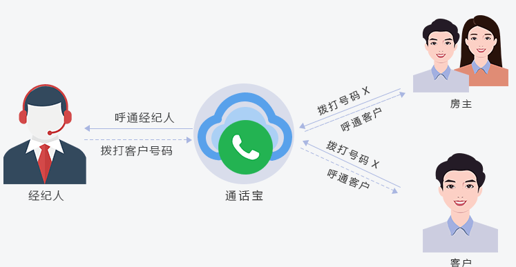 通话宝可帮助房产中介公司通过隐私真实的手机号码进行联系通话,即在通话过程中