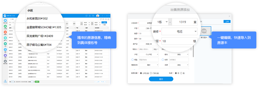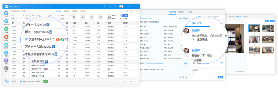 房源智能搜索/分角色自定义权限/自定义展示房源/自定义添加标签/针对房源录入带看/房源消息提醒等
