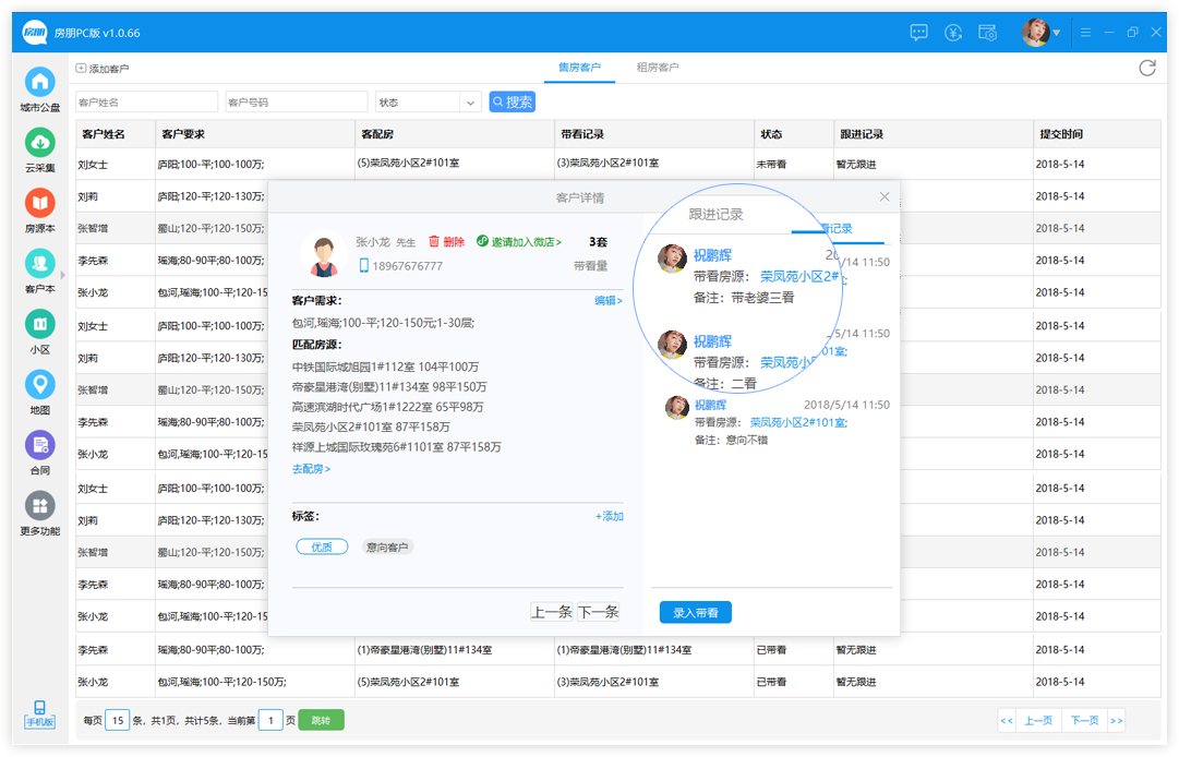 智能客配房/自定义客户标签/房源微店推送/微信客户信息智能获取/客户带看、跟进等
