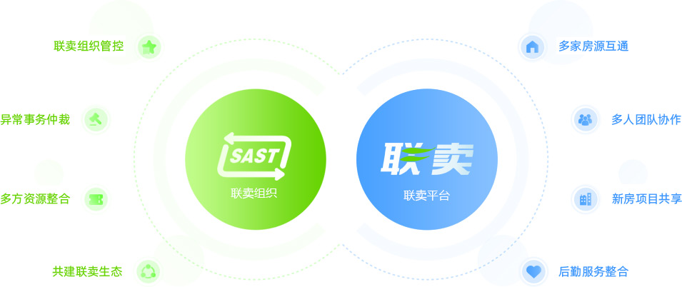 联卖(SAST),由房朋发起并创建,在当地城市为房产中介、新房分销等公司实现跨品牌资源互通、合作共赢的新型房产业务合作模式;通过联卖平台